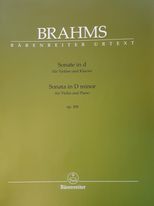 Brahms skomponował swoją „Sonatę skrzypcową d-moll” latem 1886 roku. Utwór szybko stał się częścią standardowego repertuaru i tak pozostało do dziś. Prezentowany jest tutaj w znakomitym wydaniu Bärenreiter Urtext i zawiera nieoznaczoną część Urtext oraz drugą część oznaczoną palcowaniem i smyczkiem przez Clive'a Browna, które opierają się na praktykach współczesnych Brahmsowi.