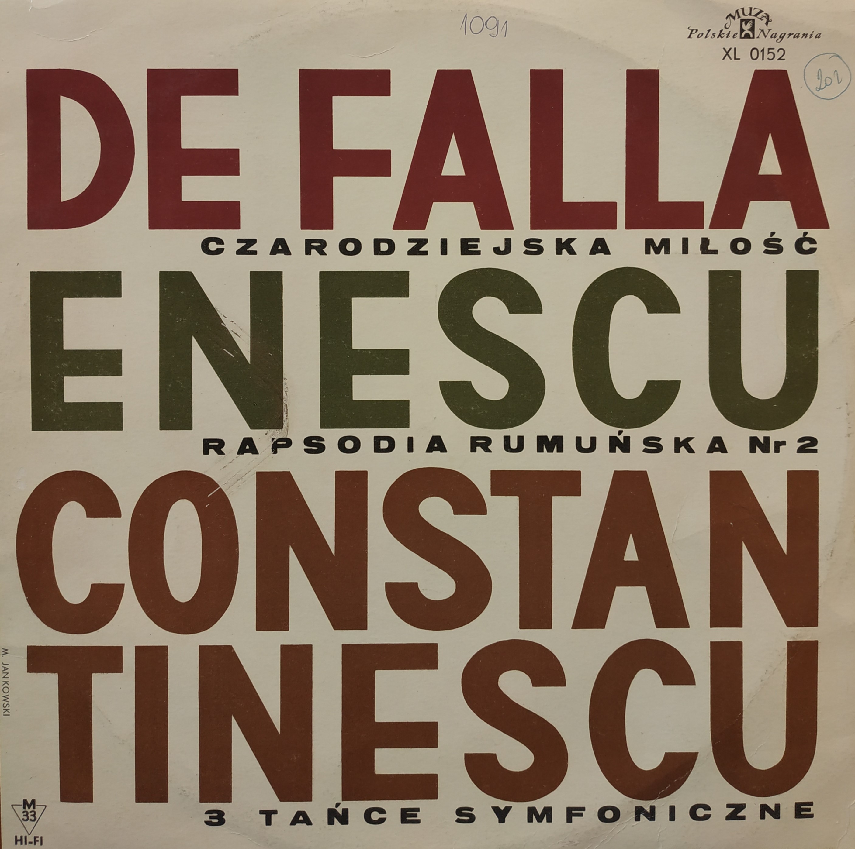 Czarodziejska Miłość (El Amor Brujo) / Manuel de Falla ; Rapsodia Rumuńska Nr 2 D-dur Op. 11 / George Enescu ; 3 Tańce Symfoniczne / Paul Constantinescu.