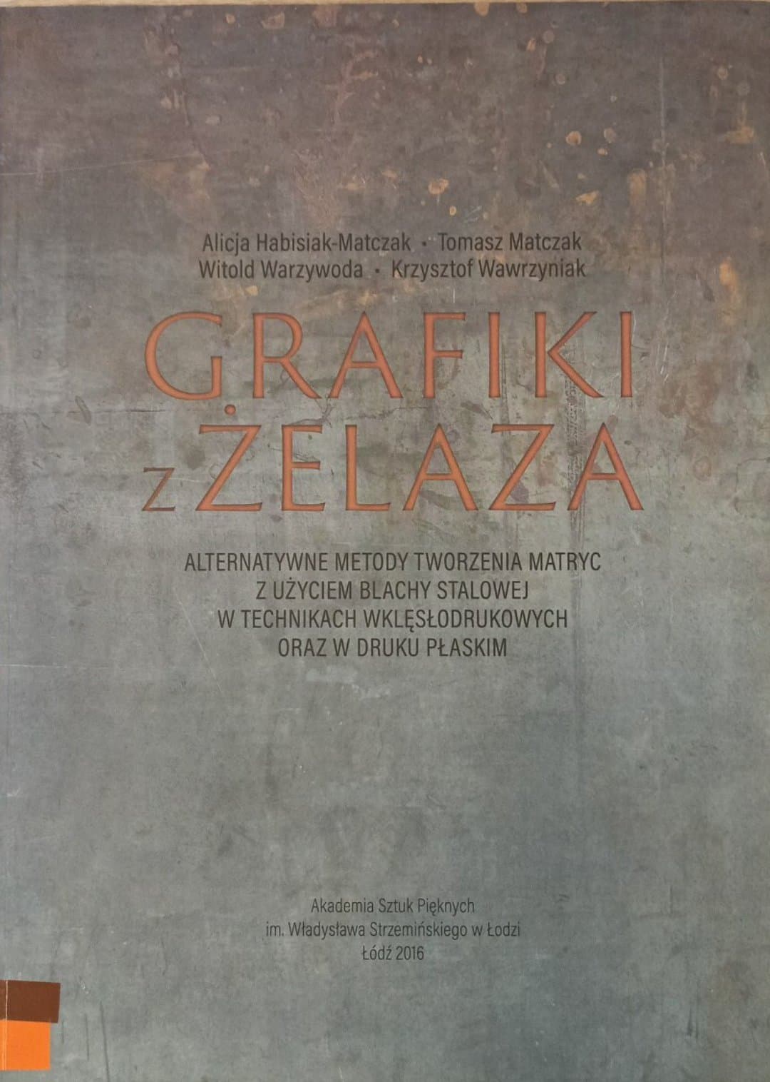 Wstęp: „ W 2016 roku, w ramach dotacji Ministerstwa Nauki i Szkolnictwa Wyższego, dwie pracownie ASp w Łodzi: Pracownia Technik Wklęsłodrukowych i Pracownia Technik Litograficznych podjęły wspólne badania naukowe pt. Alternatywne metody pozyskiwania matryc trawionych w technikach wklęsłodrukowych oraz w druku płaskim. Ich celem było ustalenie możliwości zastosowania blachy stalowej jako alternatywy dla kamienia litograficznego w druku płaskim oraz dla blachy cynkowej w druku wklęsłym. Nasze eksperymenty miały na celu poznanie właściwej blachy stalowej oraz zbadanie podobieństw i różnic w stosunku do materiałów wcześniej stosowanych w pracowniach (…)”
