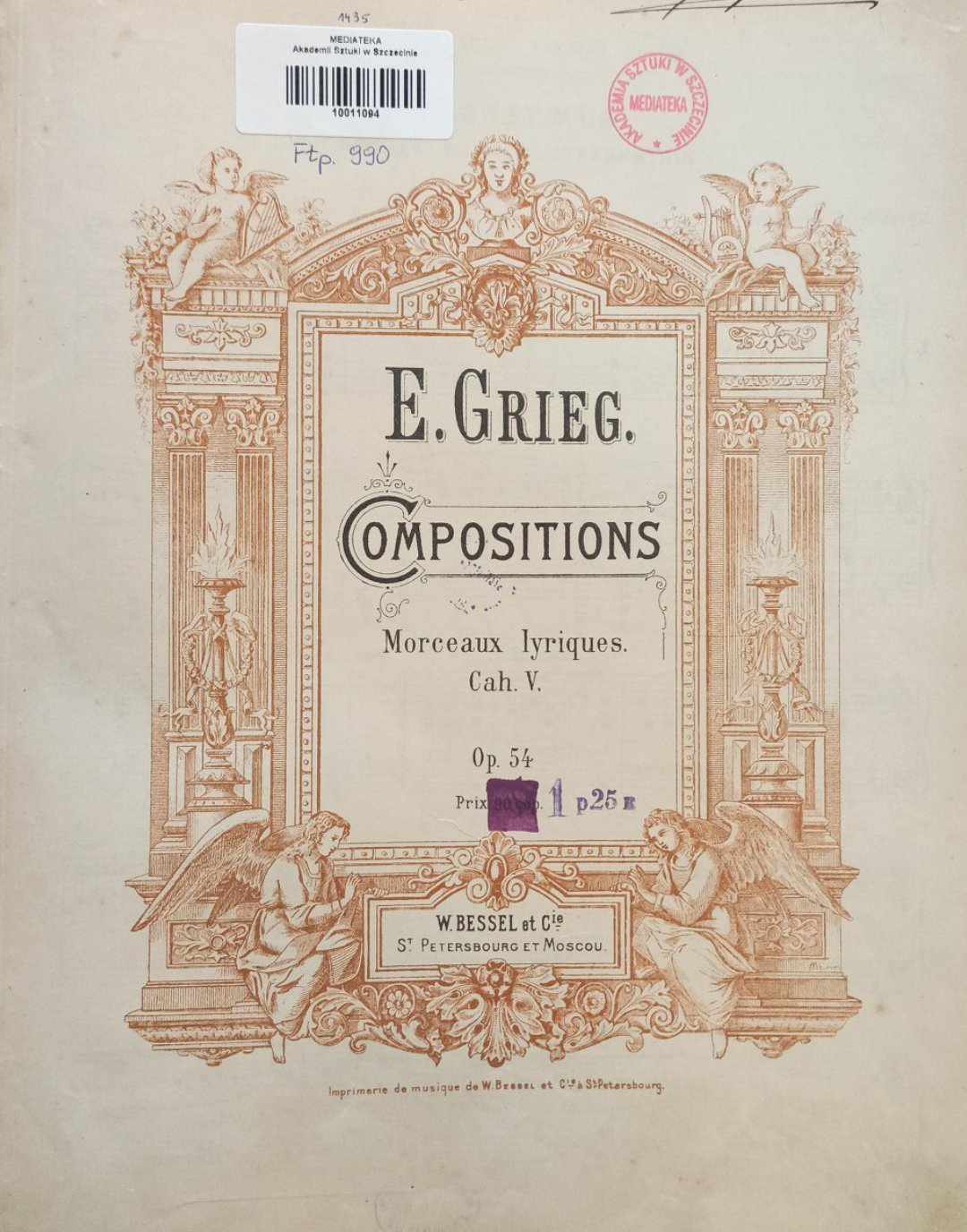 Morceaux lyriques. Cah. 5, Op. 54 / E. Grieg. - St. Petersbourg ; Moscou : W. Bessel et Cie., ca 1900. - 23 strony ; 31 cm.