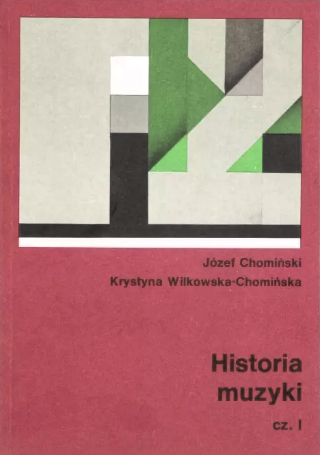 Historia muzyki. Cz. 1 / Józef Chomiński, Krystyna Wilkowska-Chomińska. - Kraków : Polskie Wydaw. Muzyczne, [1989](dr. 1989). - 342, [2] srtony, [48] stron tablic : faksymile, fotografie, nuty, portrety ; 24 cm.
