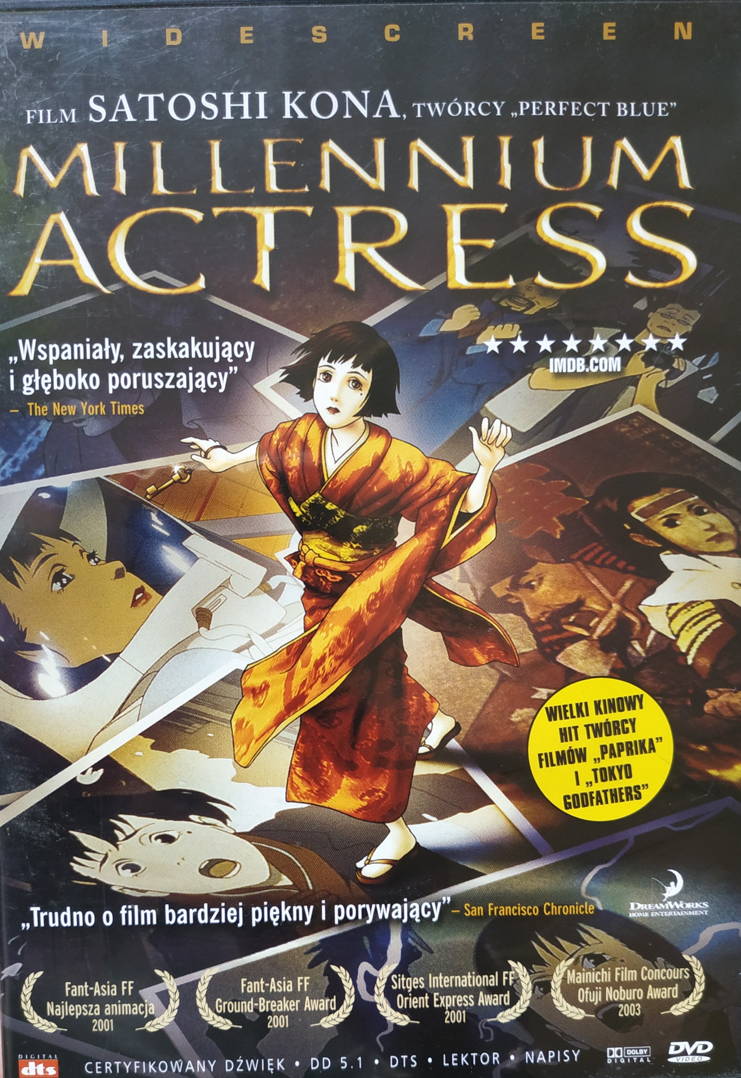 Millennium Actress / scenariusz Satoshi Kon, Sadayuki Murai ; reżyseria Satoshi Kon. - Warszawa : International Data Group Poland, 2008. - 1 płyta wizyjna (DVD) (83 min) : dźwiękowy, kolorowy ; 12 cm.
